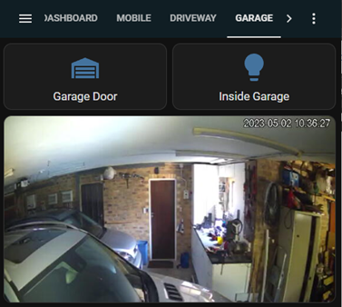 Integrate with most IP cameras like Hikvision, Duhua, and more. Extra dashboards can be created for specific areas, e.g. for driveway where you can see the gate while opening or closing, or in a room.