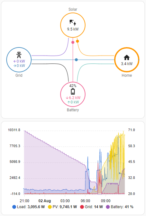 Several power management automations based on energy usage can be implemented according to the client's needs. For example, when reaching a specific power consumption reading, the system can send a notification and turn off certain devices, or if battery is full and there is extra capacity from the Solar, it can turn on the Geyser in the meantime.
