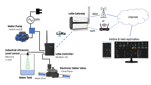 Simple flow measurement (in litres) through a standard 20mm pipe. Readings can be sent via email, SMS or in-app notifications at configurable intervals (e.g. daily, weekly, or monthly).